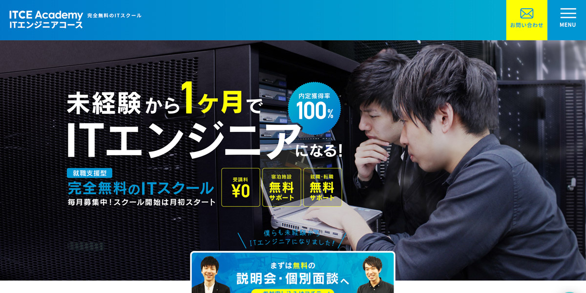 ITCE Academy ITエンジニアコースは未経験からITスキルを身につける事ができるプログラミングスクールで、就活サポートを受けながらプログラミングを学ぶことができます。