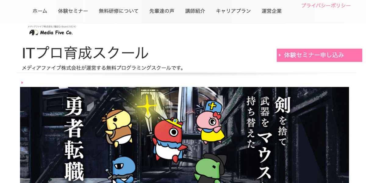ITプロ育成スクールはメディアファイブ株式会社が運営する無料のプログラミングスクールです。