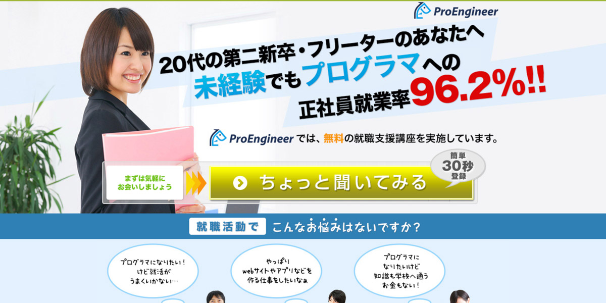 プロエンジニアは無料の就職支援講座を実施しているプログラミングスクールです。