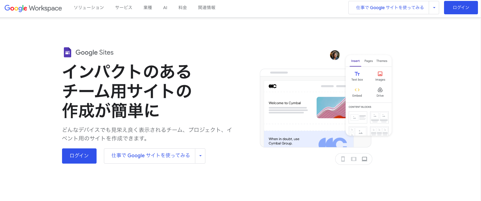 簡易的なホームページを作成したい方や、すでにGoogleの他のサービスを利用している方は導入がしやすいでしょう。