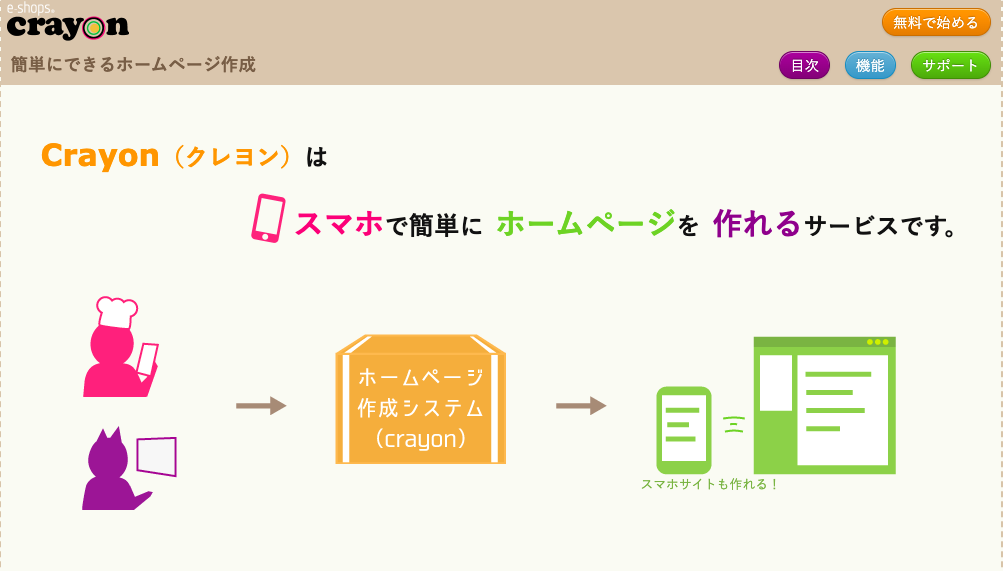 Crayonは、スマートフォンを利用してシンプルなホームページが作成できるツールです。