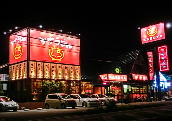 ▲ 加寿屋 羽曳野店の外観。名物の「かすうどん」をはじめとし、さまざまなメニューを展開