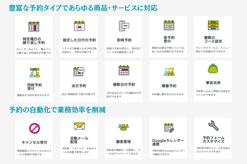 そんなペライチでは、予約管理業務の工数を大幅削減をしながら、本格的な予約システムが誰でも簡単に構築できます!