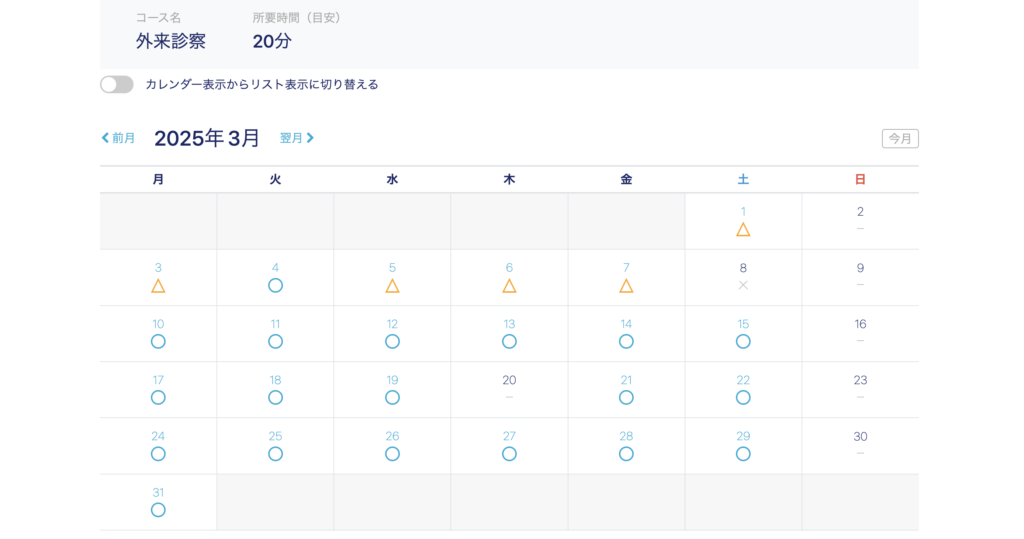 ▲ペライチで利用しているオンライン予約画面。シンプルなカレンダー型のUIとなっています。