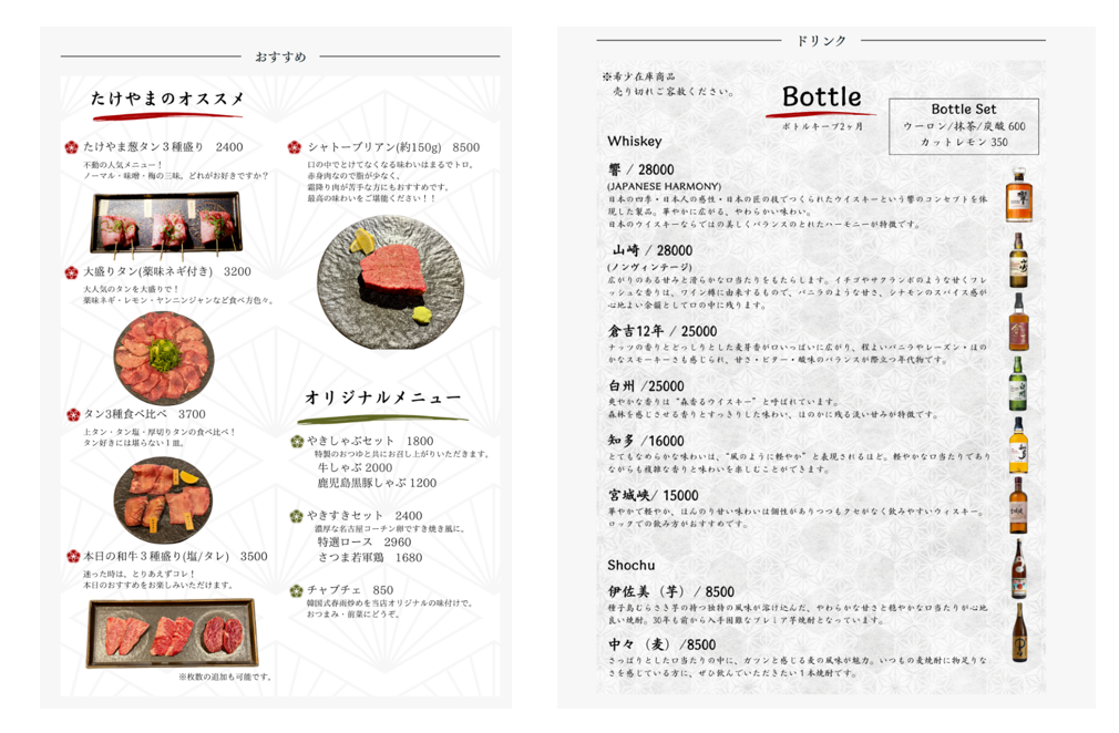 2023年5月に「焼肉たけやま」をオープンした当初からペライチを活用しています。