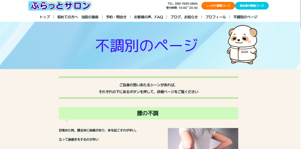 自分で管理ができるからこそ「不調別のページ」など、細かくサイトを構築することができました。