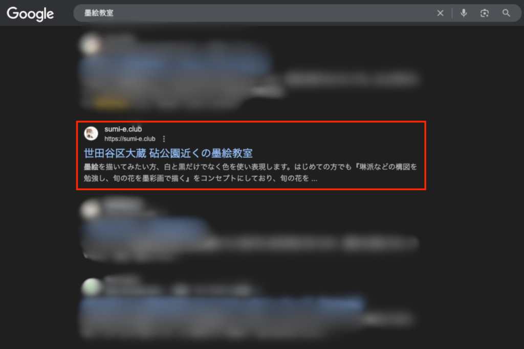 ▲「墨絵教室」と検索すると、古川さんのサイトが上位表示されています。