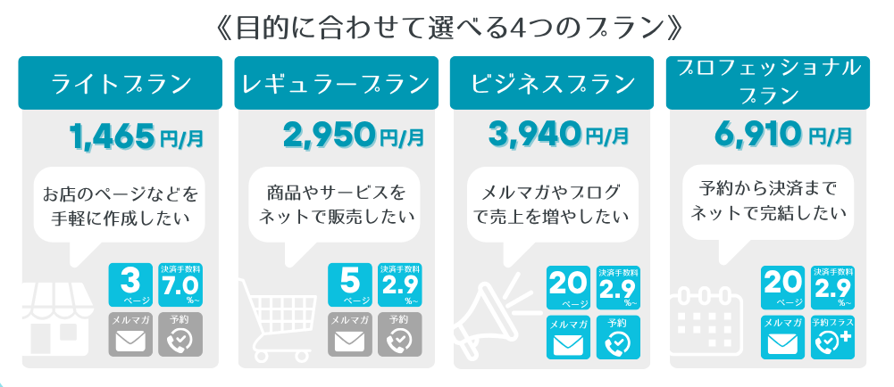 最初の1ヶ月は無料でページを公開することができ、後から自身のビジネスに合わせたプランを選択可能です。