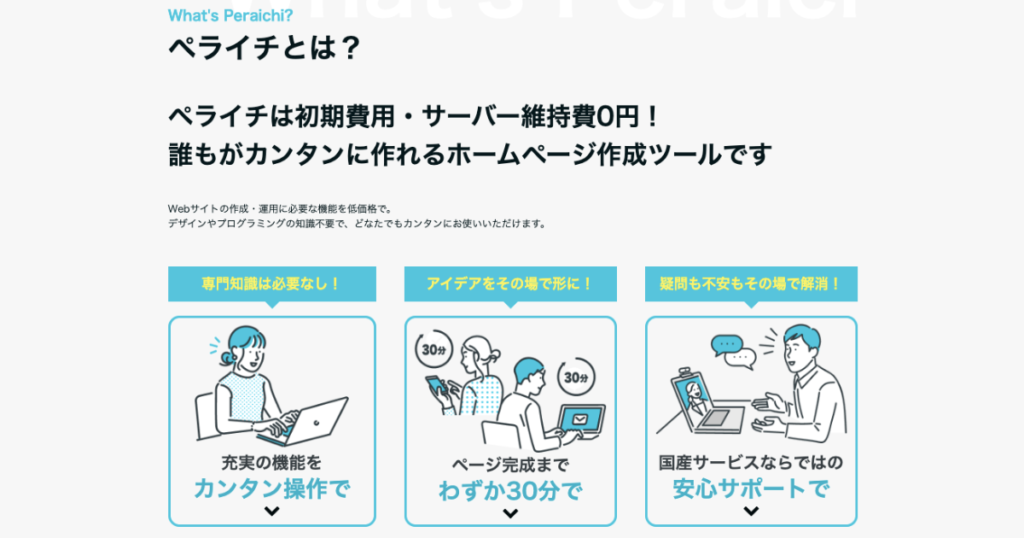 - ビジネスについてのサポート: ペライチのサポートは、ツールの使い方だけでなく、「ホームページ制作のノウハウ」や「実際にペライチを使っている人の実例紹介」といった、ビジネスに関する情報発信も精力的に行っています。