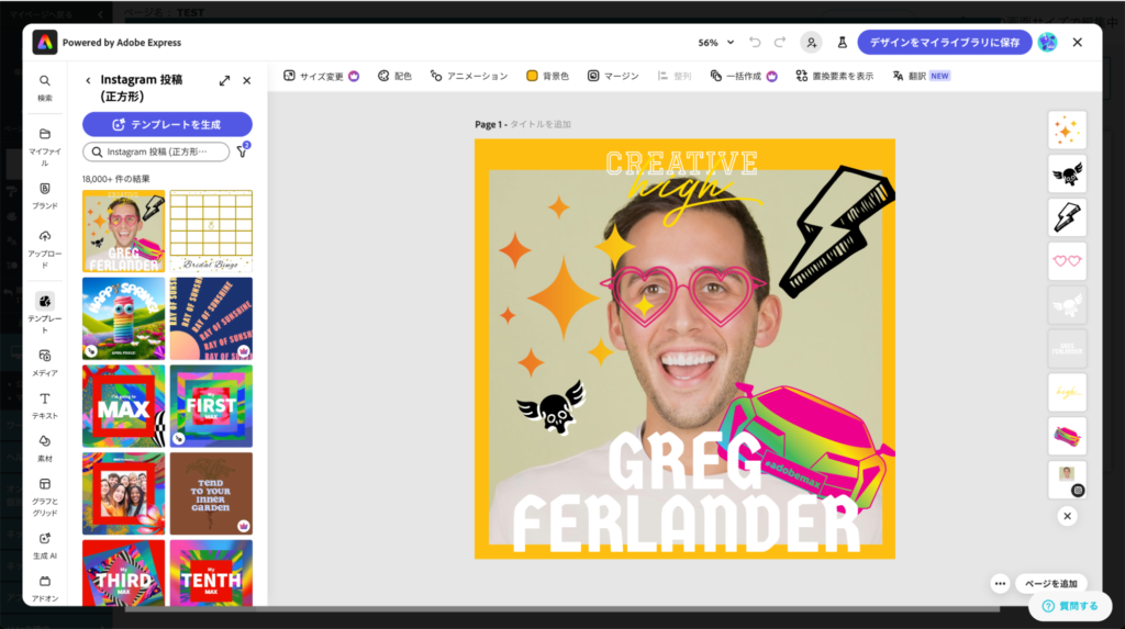Adobe Expressが立ち上がり、マイライブラリの画像が読み込まれて編集が開始できます。