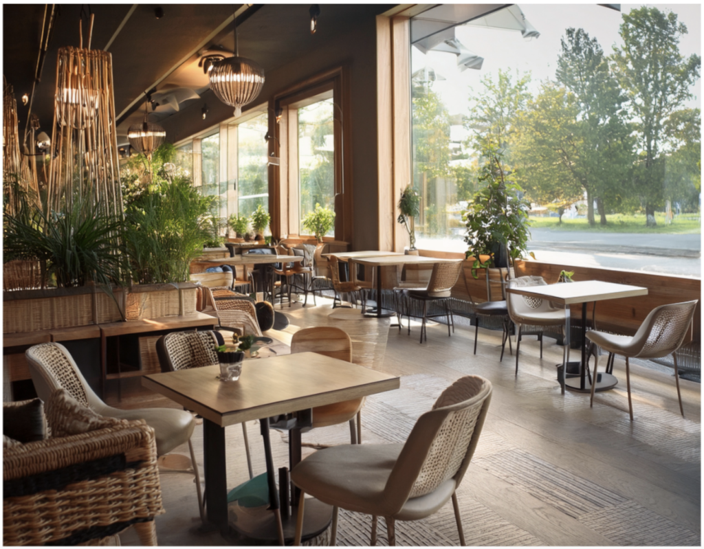 Adobe Expressの AI 画像生成機能は、「会議室でのセミナー」や「くつろげるカフェ」など、簡単なキーワード入力だけでオリジナルイラストや写真風画像を作成できます。