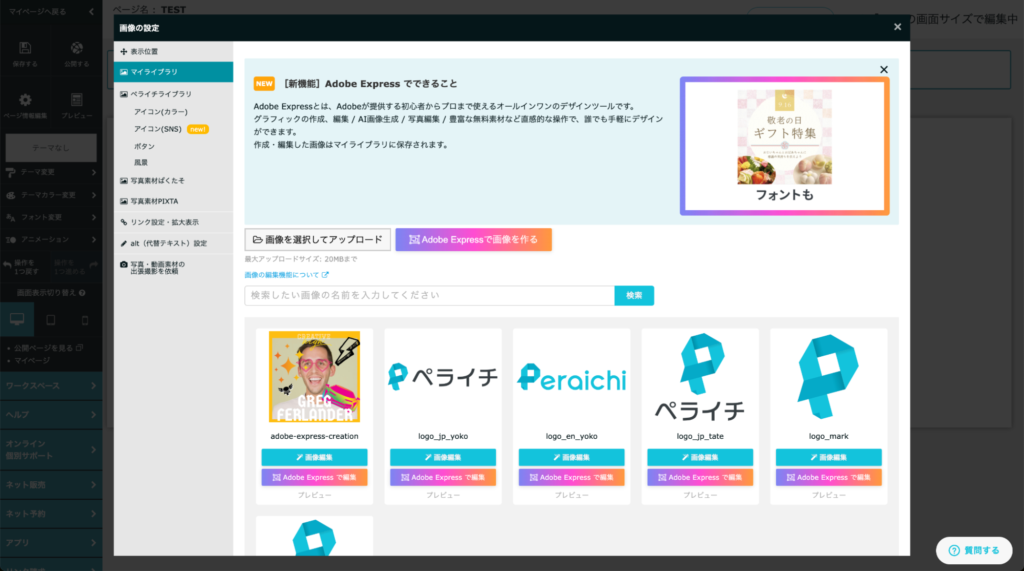 自動的にペライチのマイライブラリに画像が追加されます。