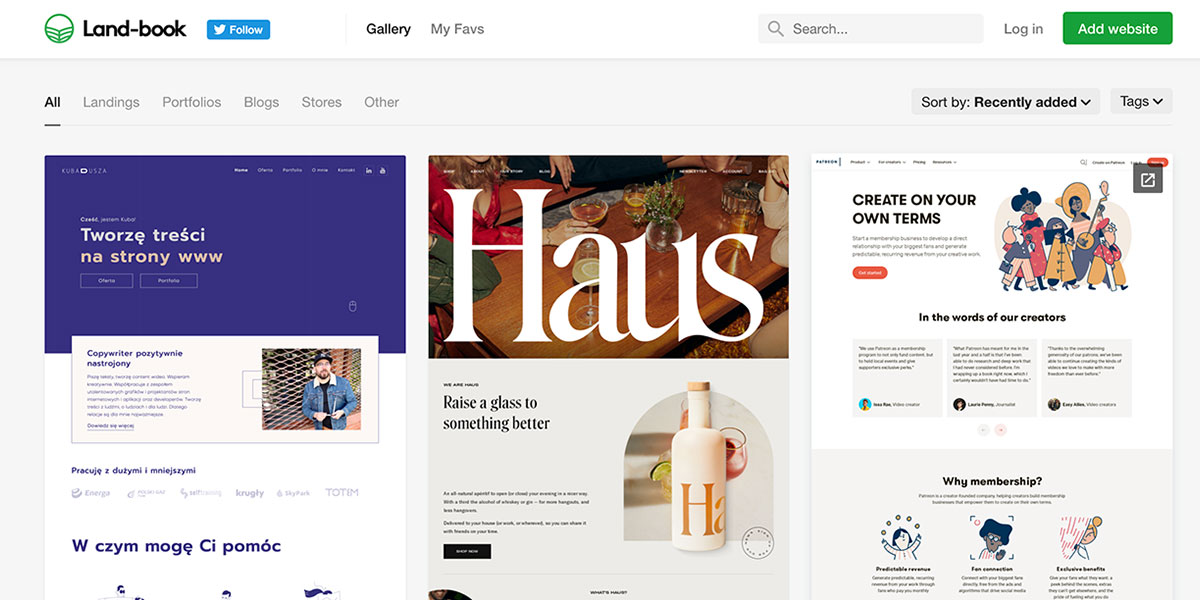 Land-Bookはクオリティの高いページを紹介しているギャラリーサイトです。
