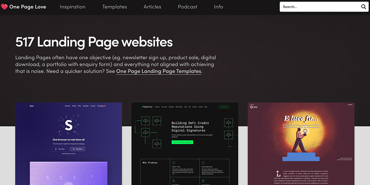 ONE PAGE LOVEはデザインの美しい1枚ものウェブサイト(ランディングページ)やテンプレートを紹介しているギャラリーサイトです。