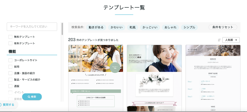 無料だからと正直あまり期待していませんでしたが、想像以上にテンプレの種類が充実していて、使える画像などの要素も多く、そのまま運用しても遜色ないレベルのサイトが出来上がりました。