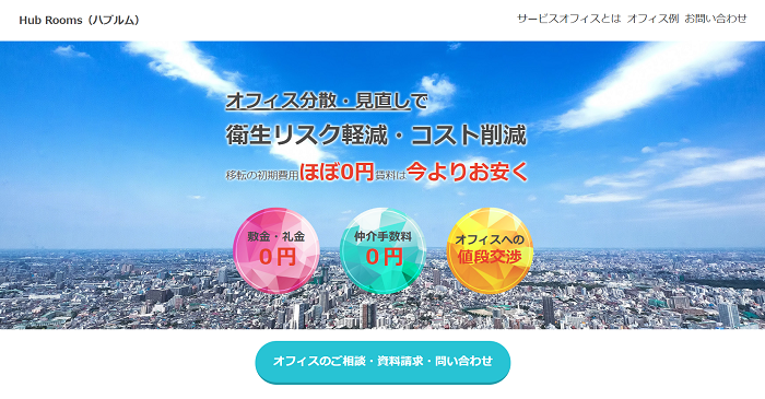 Hub Rooms(ハブルム)は、レンタルオフィス・サービスオフィス・シェアオフィスを専門に取り扱う、オフィスコンサルティングサービスです。