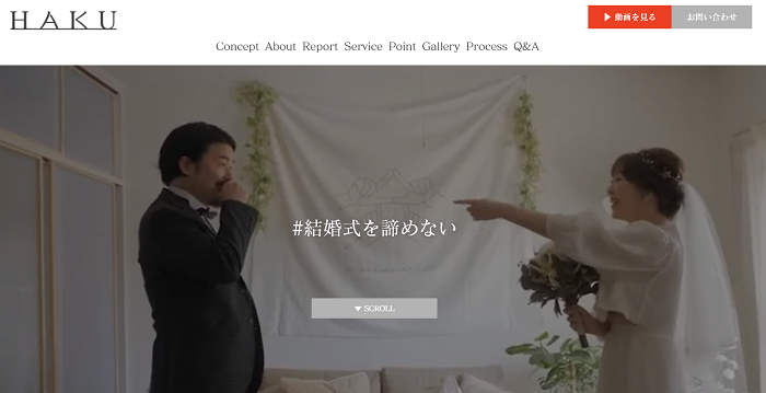 様々な会場での結婚式をサポートするHAKUが、オンライン結婚式の問い合わせのために制作されたLPです。
