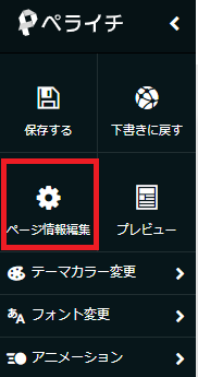 1.編集画面左メニュー内の「ページ情報編集」をクリック