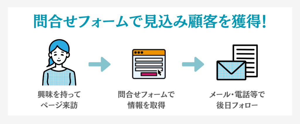 問い合わせフォームを設置することで、入力されたメールアドレスや電話番号などを元に、お客さまに対してこちらから能動的にコミュニケーションを取ることができるようになります。