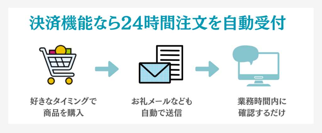 商品やサービスをすぐに提供できる場合や、商品の定価が定められている場合は、オンライン決済を導入することで自動的に収益を上げることができます。