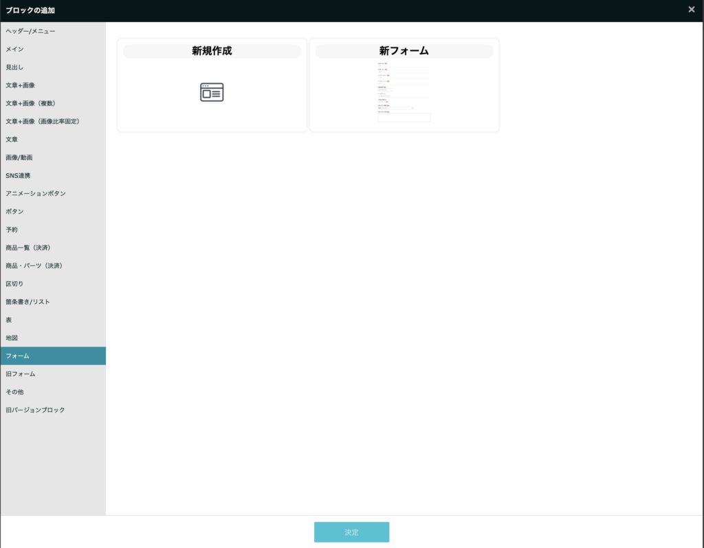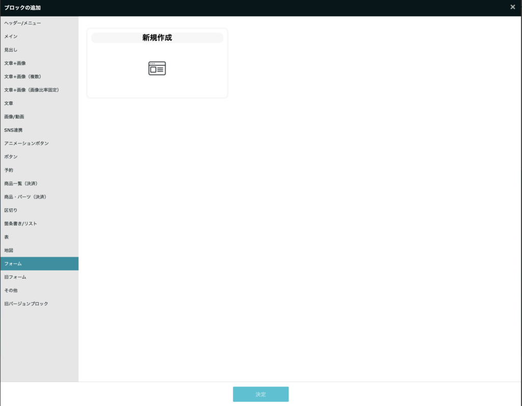 作成したフォームは、フォームブロックの選択画面に追加されます。