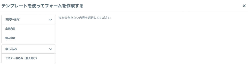 「かんたんフォーム作成」の場合はテンプレートから選択可能です。