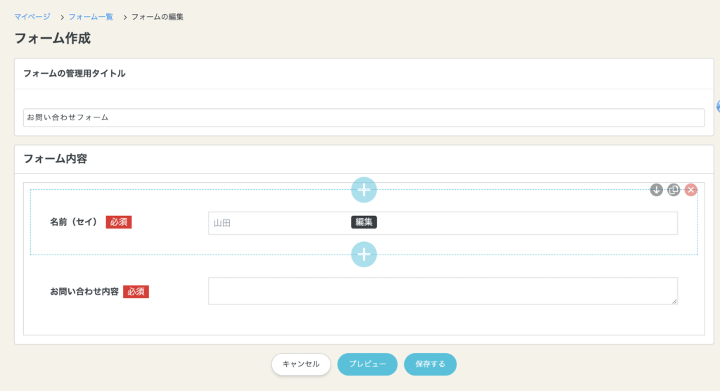 -フォーム設定画面から作成 - フォーム項目の編集方法