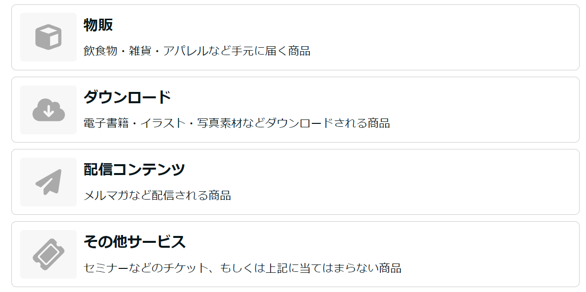 「通常商品」:1回の注文に対して、商品・サービスの提供や決済は1回きり